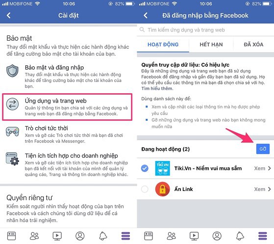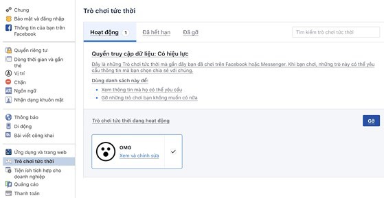 Nếu đang chơi những game không rõ nguồn gốc, bạn cần truy cập vào phần cài đặt trên Facebook, tìm đến mục Instant Games (trò chơi tức thời) và gỡ bỏ. Tương tự, đối với các thiết bị di động, người dùng chỉ cần mở ứng dụng Facebook, tìm đến phần Settings & Privacy (cài đặt & quyền riêng tư) > Settings (cài đặt) > Instant Games (trò chơi tức thời), đánh dấu vào các ứng dụng không rõ ràng và nhấn Remove để gỡ bỏ.